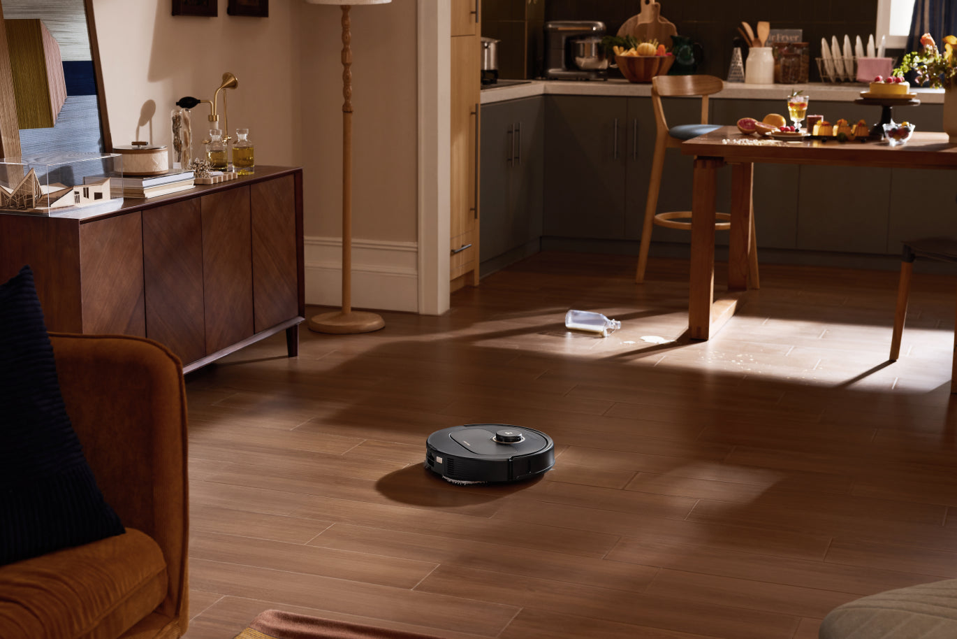 Bao quát góc cạnh6Giẻ lau FlexiArm™ có thiết kế tay robot mở rộng linh hoạt. Khi phát hiện góc tường hoặc chân đồ nội thất, robot sẽ tự động mở rộng giẻ lau để làm sạch sát sao mọi chi tiết đến mức hoàn hảo.