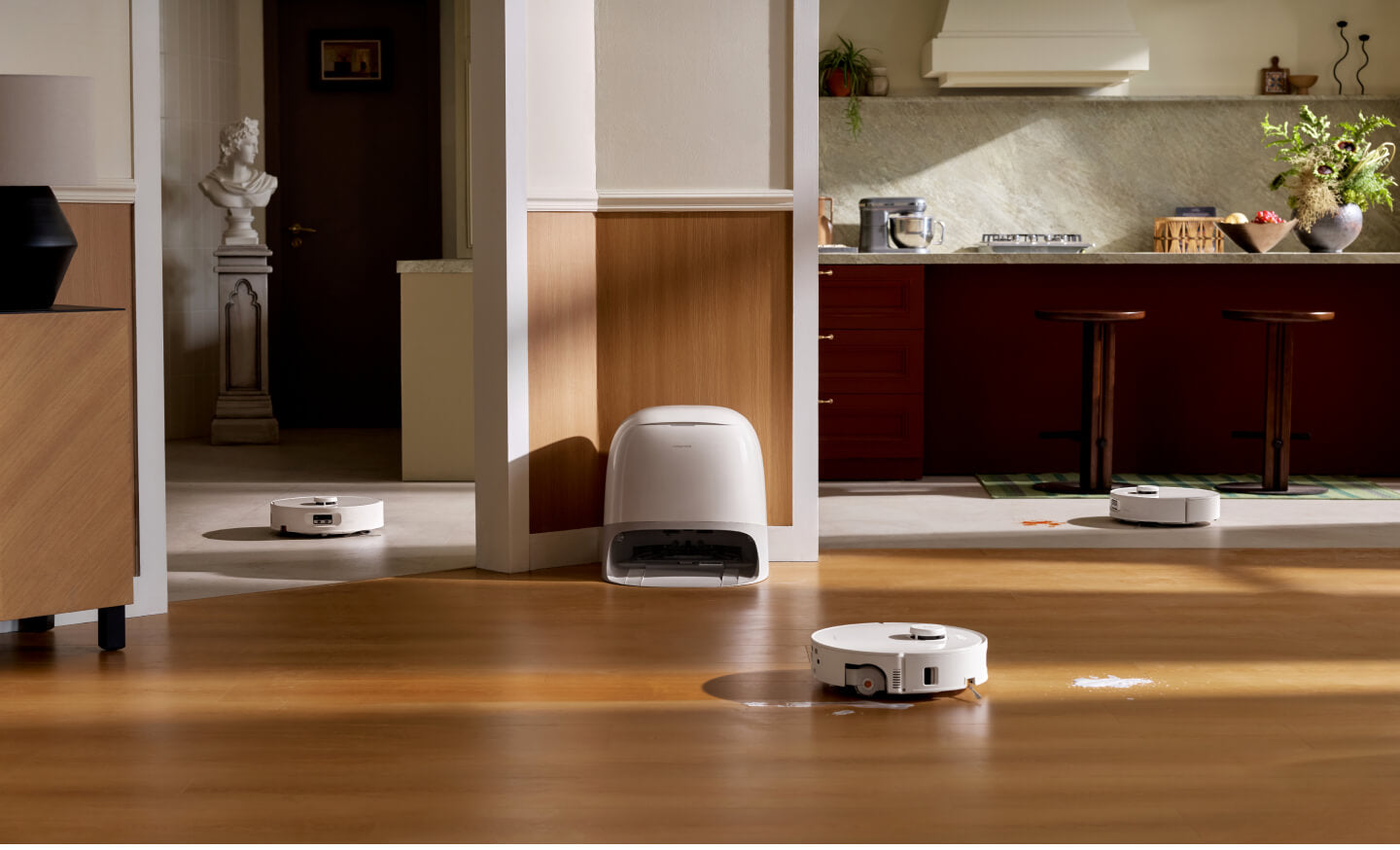 Được hỗ trợ bởi công nghệ AI nhận diện, hệ thống làm sạch thích ứng ngay lập tức xác định loại vết bẩn trên đường đi. Với bụi dày, máy sẽ tự động tăng lực hút để thu gom từng hạt nhỏ. Với vết loang đổ hay vết bẩn ướt, máy chuyển sang chế độ "Chỉ lau", đồng thời nâng chổi cạnh và chổi chính để ngăn ngừa lây nhiễm chéo. Từ mảnh vụn li ti đến vết bẩn ướt cứng đầu, robot luôn áp dụng chiến lược làm sạch tối ưu trong mọi tình huống.