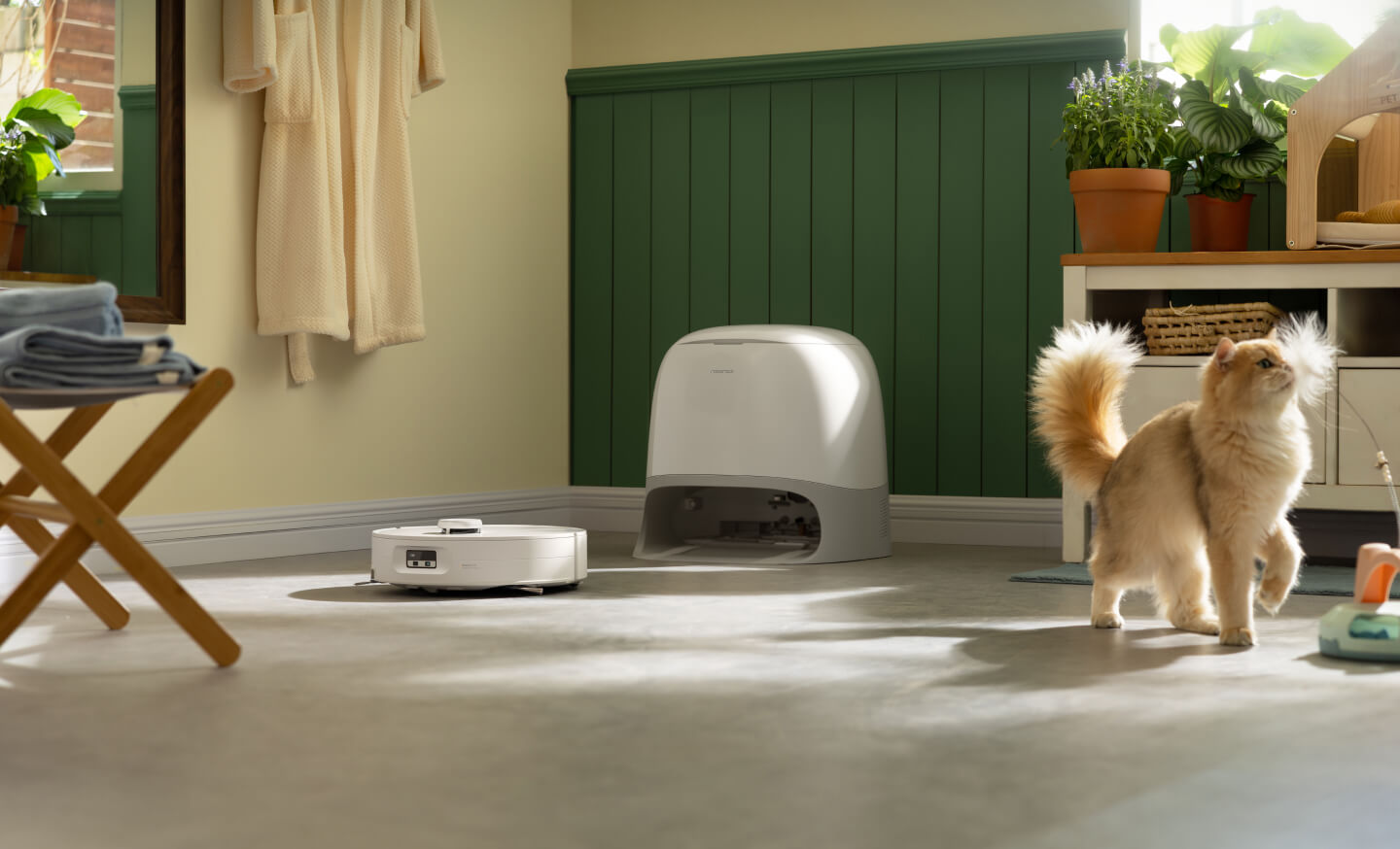 Khi đến gần mèo con hoặc cún con, robot sẽ dừng ngay chổi chính và di chuyển sang bên để tránh làm thú cưng hoảng sợ.